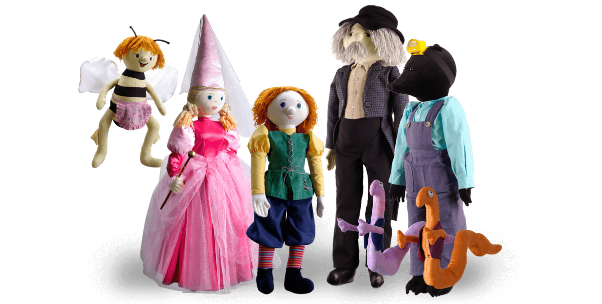 - duże oryginalne kukiełki wykonane przez Pracownie Artystyczną „KASIA” w Pilźnie,