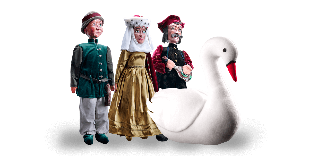 W przedstawieniu bierze udział 10 postaci: Hanulka, Marcinek, Księżna Kinga, Maciej Chrapka, Rybak i jego Żona, Bard, Mędrzec oraz tajemniczy Łabędź i Sumienie.